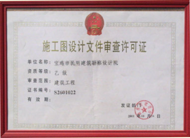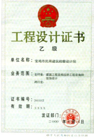 国家乙级建筑工程设计资质; 证书编号 261112